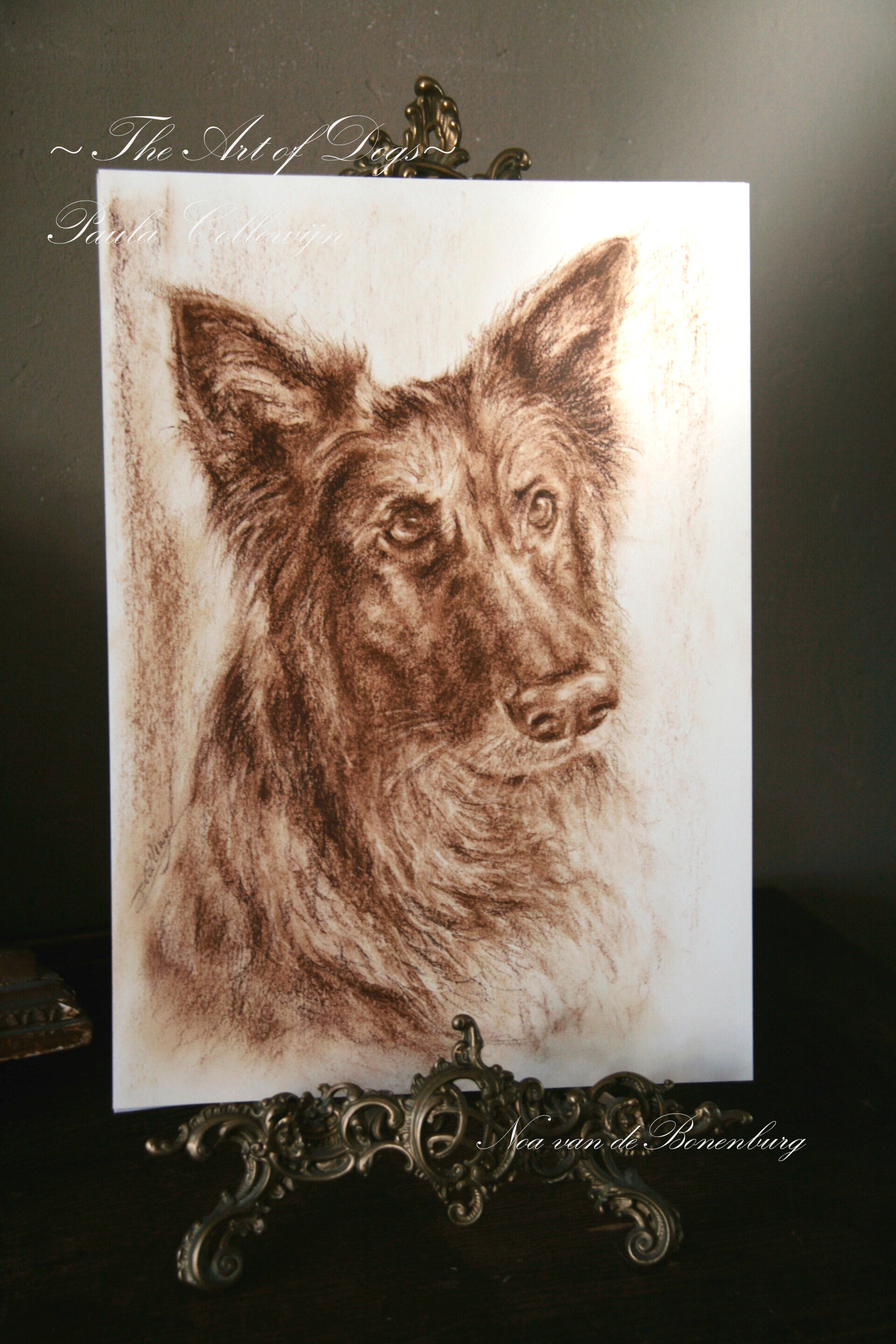 Toen ik Ice naar de hondenhemel heb moeten laten gaan hebben hebben mijn kinderen voor mijn 60ste verjaardag een foto van Ice in het groot laten tekenen door Paula.